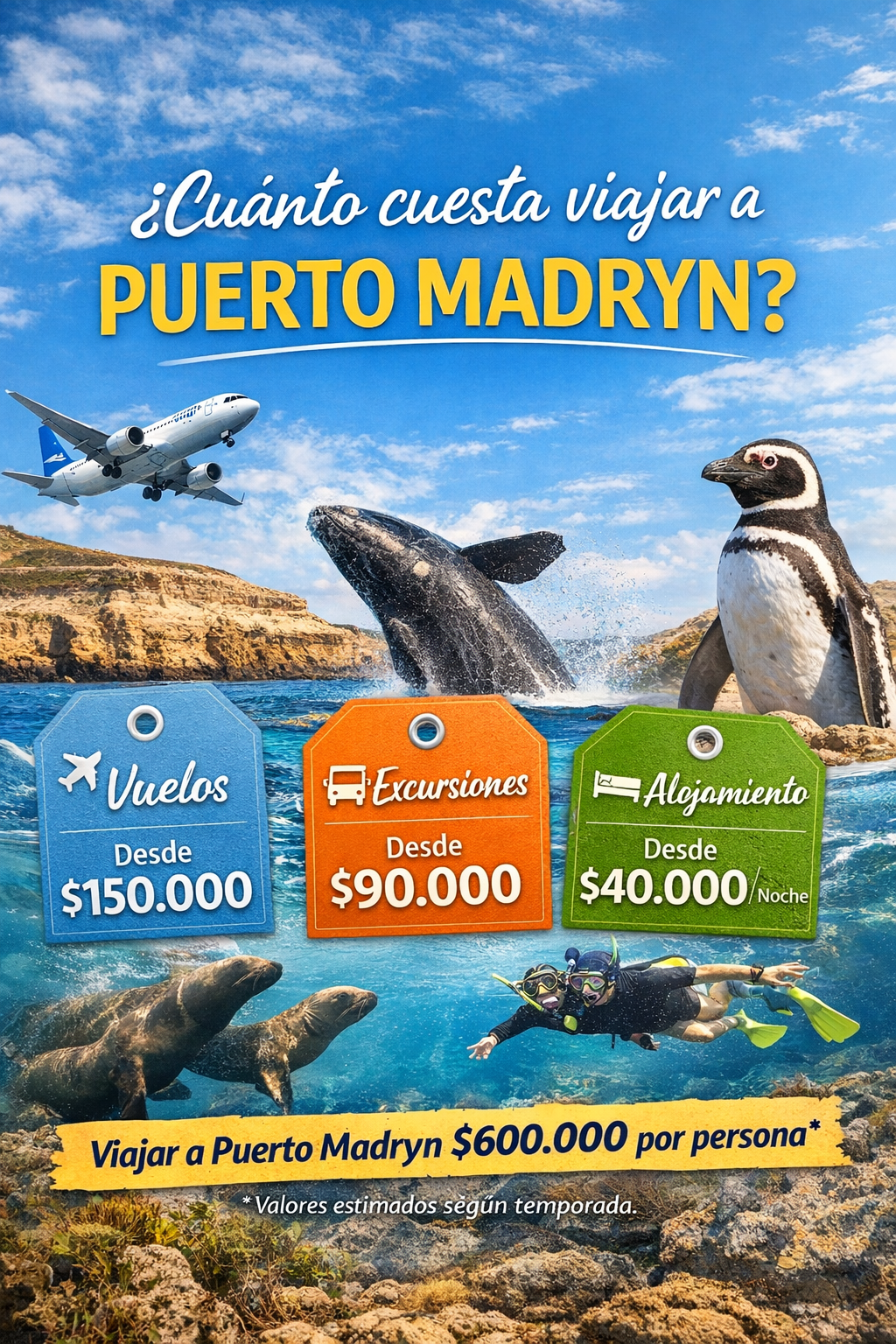 Puerto Madryn es uno de los destinos más visitados de la Patagonia argentina. La posibilidad de ver ballenas, pingüinos, lobos marinos y otros animales en su hábitat natural hace que cada año miles de viajeros elijan este lugar para sus vacaciones. Una de las preguntas más comunes al momento de organizar el viaje es cuánto cuesta viajar a Puerto Madryn. El presupuesto puede variar según la época del año, el tipo de alojamiento, las excursiones que se realicen y la forma de llegar al destino.En esta guía te contamos cuáles son los principales gastos que deberías tener en cuenta para planificar tu viaje.
